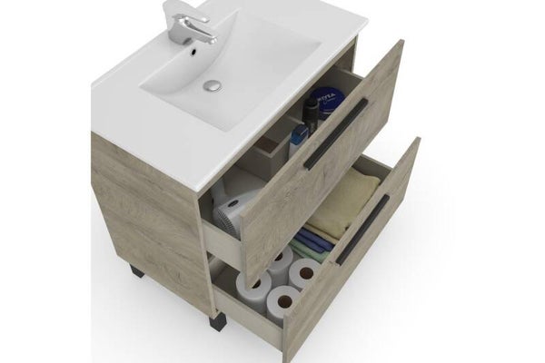 Pack Mueble de Baño ATNA Roble 2 Cajones y Espejo + Columna 2 P