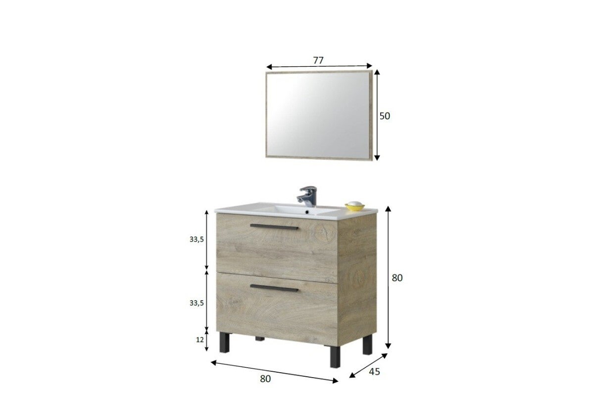 Mueble de Baño Blanco 80x45 2 Cajones + Espejo + Columna 2 puertas
